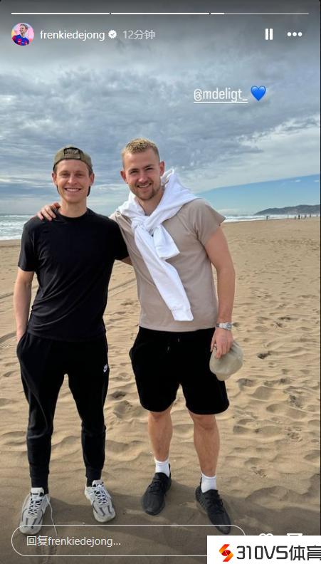 曾经的阿贾克斯双子星!德容晒与德里赫特在沙滩上的合照