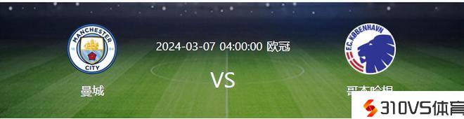 在1|8决赛首回合竞赛中,曼城客场作战,以超强的全体实力片面压制哥本哈根,最终3:1拿下竞赛,在两回合竞赛中占得先机。本轮主场再战哥本哈根,只需曼城不输两个球以上,就基本铁定晋级本赛季的欧冠8强。