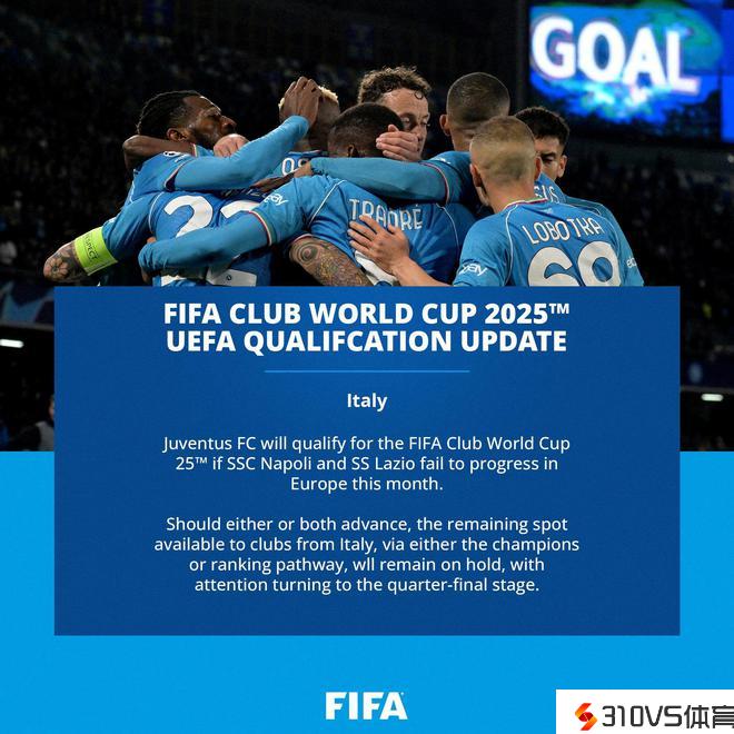 FIFA:假设那不勒斯拉齐奥本月欧冠出局,尤文将获2025世俱杯资历