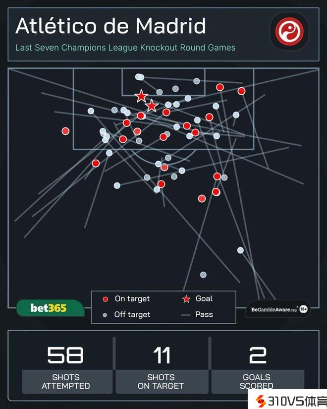 马竞近7场欧冠淘汰赛只进2球 索默本赛季各项赛事21次零封对手