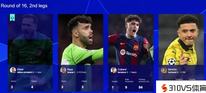 本周欧冠最佳球员:奥布拉克击败桑乔、库巴西、拉亚中选