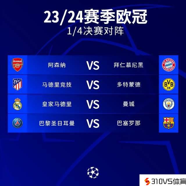 欧冠八强预测:曼城枪手会师演出英伦德比 大巴黎保送进决赛