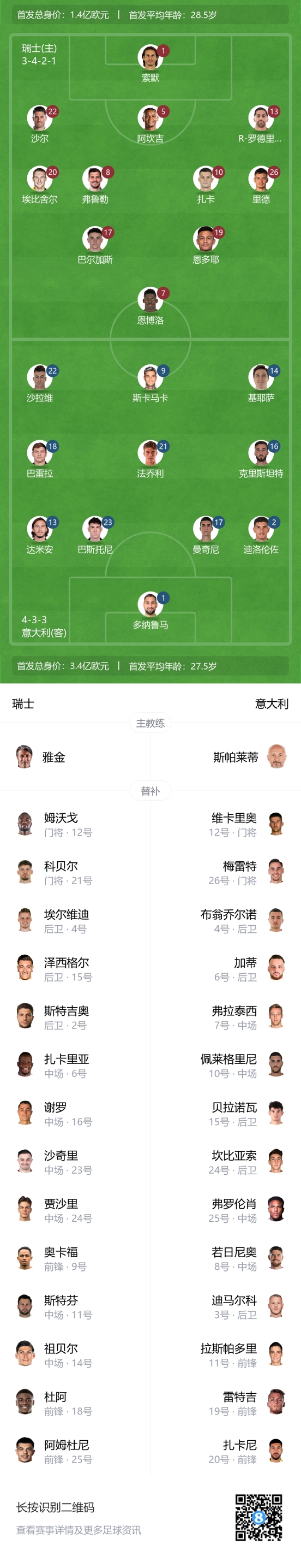 瑞士未登场替补:12-姆沃戈、21-科贝尔、4-埃尔维迪、15-泽西格尔、6-扎卡里亚、23-沙奇里、24-贾沙里、9-奥卡福、25-阿姆杜尼