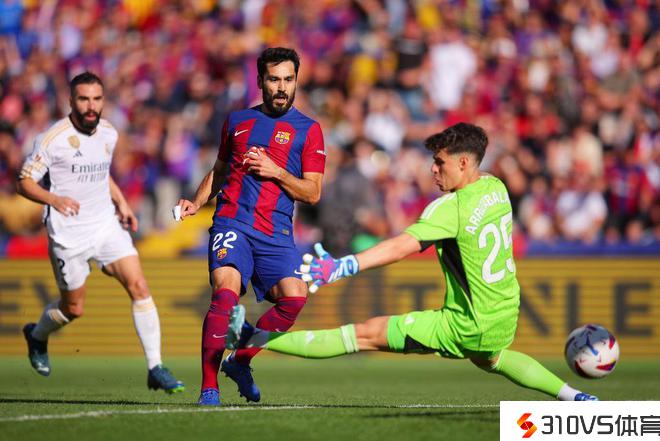 巴萨前场打出短传配合,琼阿梅尼铲球却帮了倒忙,招致皇马防线出现混乱。京多安插上,阿拉巴的铲球又给京多安“做球”,德国球星冷静推射,打穿凯帕的小门,巴萨1-0抢先!