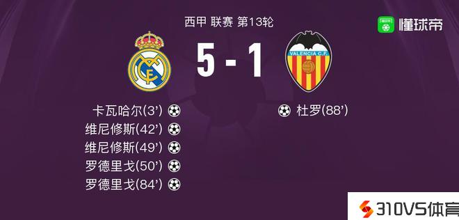 皇家马德里vs瓦伦西亚球员评分:罗德里戈10分,马马尔达什维利5.3分