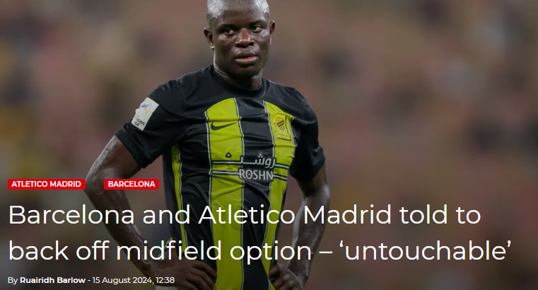据报道,尽管得到了巴萨和马竞的关注,吉达联合已经明确表示坎特是非卖品。