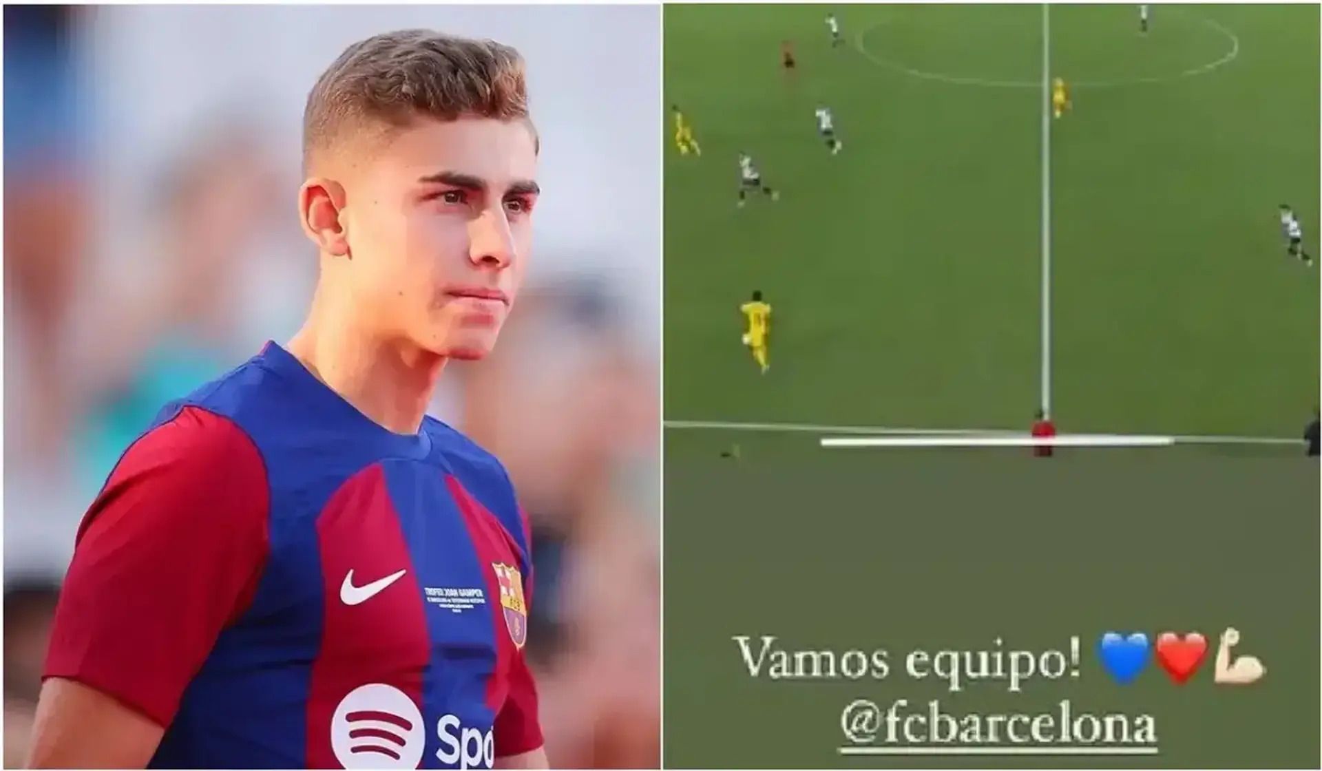 在瓦伦西亚与巴塞罗那的比赛期间,巴萨球员费尔明•洛佩斯在个人社交平台上上传了比赛直播画面,并附言“大家加油”,同时还@巴塞罗那俱乐部官方账号,随后他删除了这条动态。