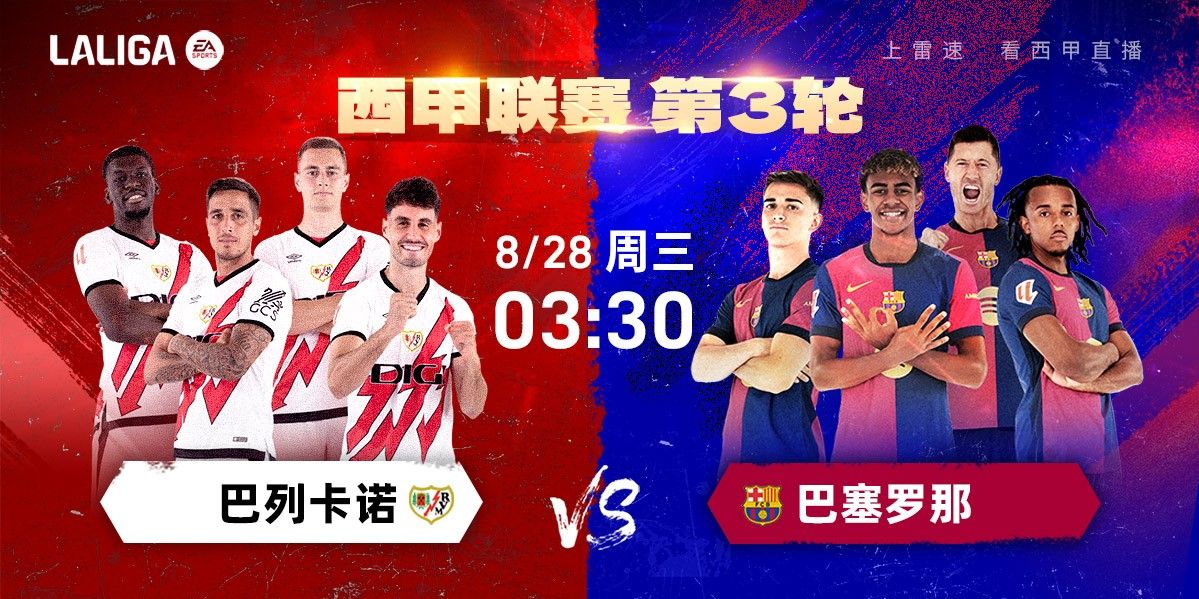 北京时间8月28日凌晨3:30,西班牙甲级联赛将迎来第3轮的一场对决,巴列卡诺坐镇主场迎战来访的巴塞罗那。