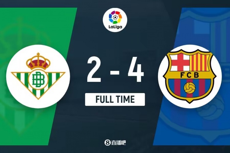 下半场伤停补时8分钟,全场比赛结束,最终巴萨4-2贝蒂斯。