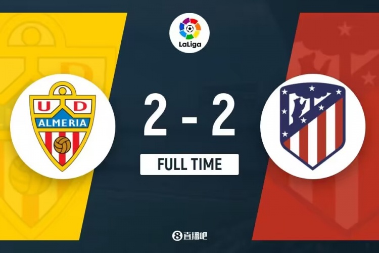全场比赛结束,马竞2-2阿尔梅里亚。
