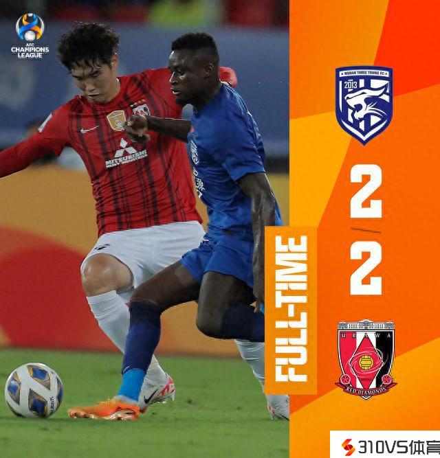 全场竞赛完毕,武汉三镇2-2浦和红钻。