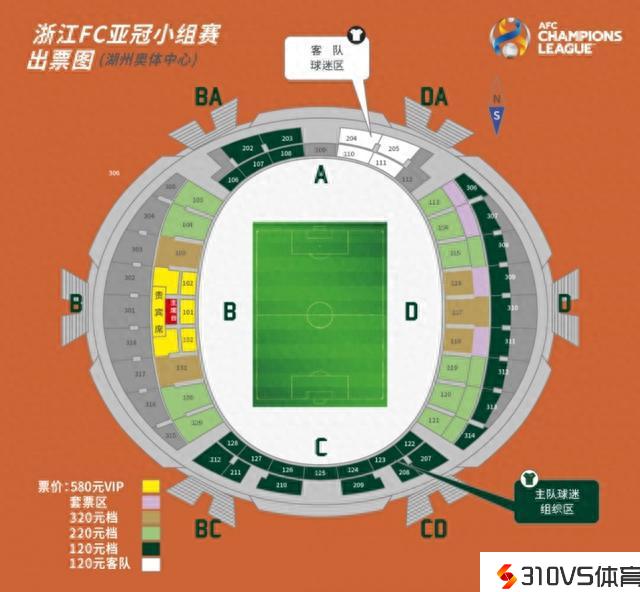 浙江队亚冠小组赛第二轮主场球票明日开售,最低票价120元