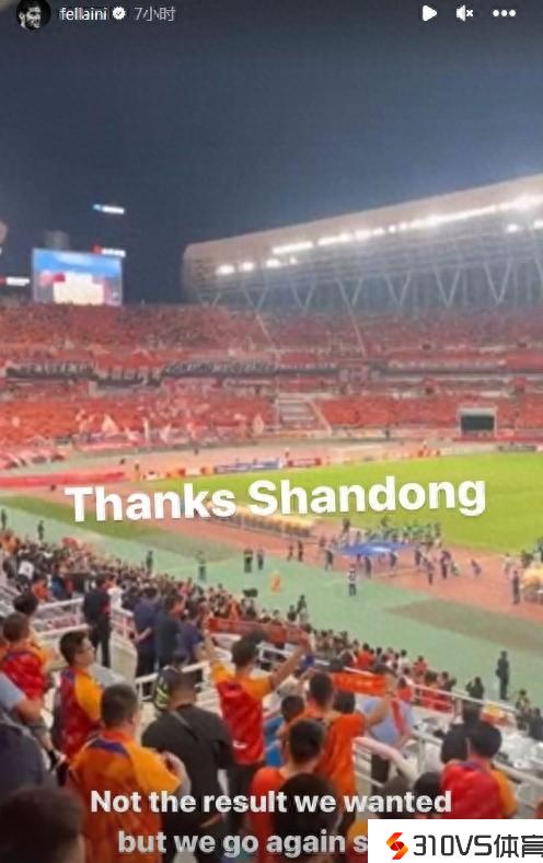 费莱尼:感谢山东球迷;结果不尽人意,但我们会很快重新起航