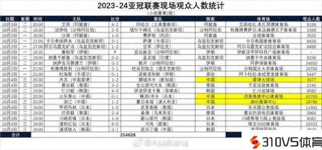 亚冠第2轮现场观众:山东主场43783人最多,最少仅1088人