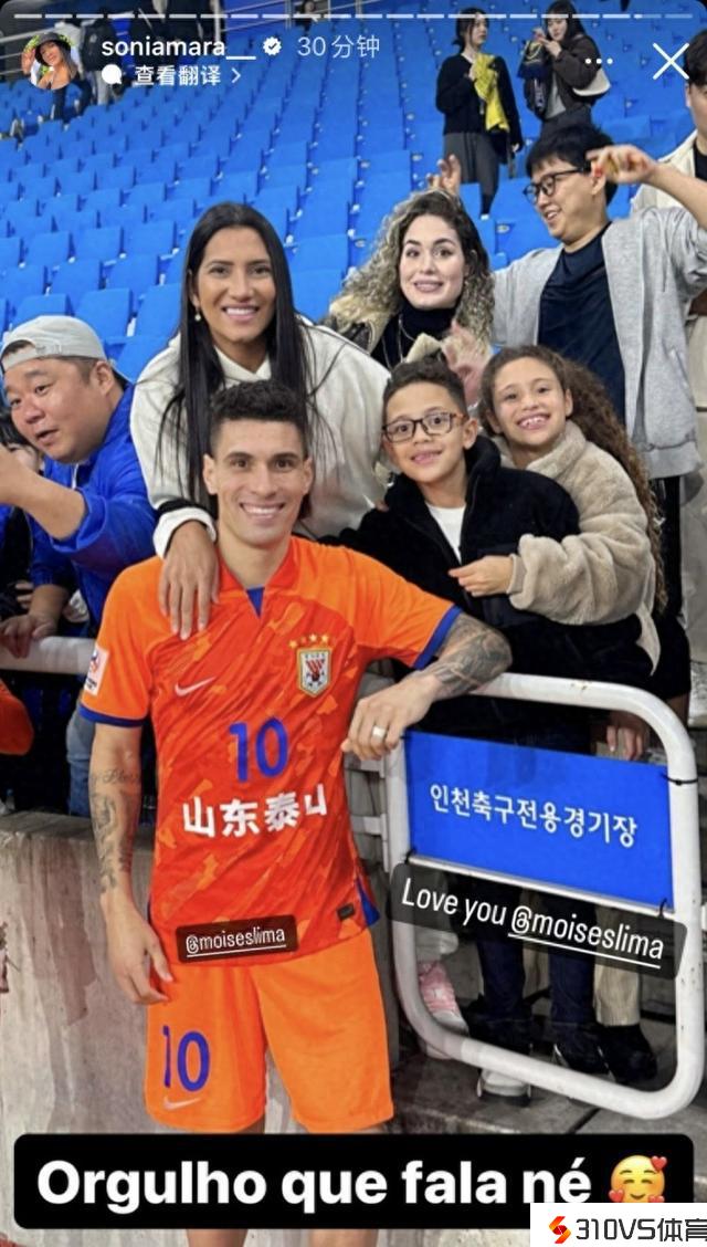 亚冠小组赛第三轮竞赛,莫伊塞斯的家人也离开了客场。赛后,赢球后的莫伊塞斯也十分开心肠与家人在客场所影纪念。