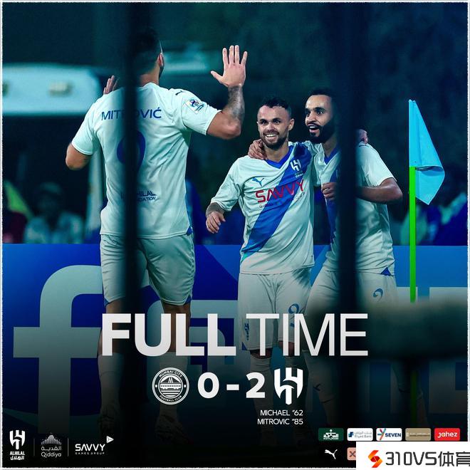 第85分钟,利雅得新月禁区内传中,米特洛维奇高高跃起力压对方后卫将球顶进!2-0!利雅得新月锁定胜局!