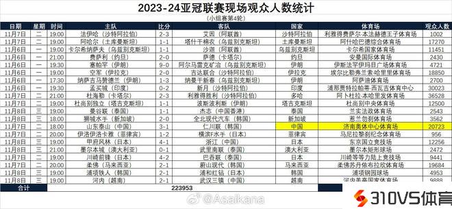 2023-24亚冠联赛现场观众人数统计(小组赛第4轮)