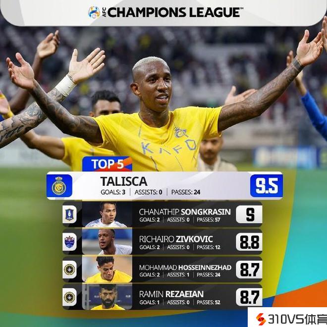 实至名归,官方:塔利斯卡中选亚冠本轮最佳球员