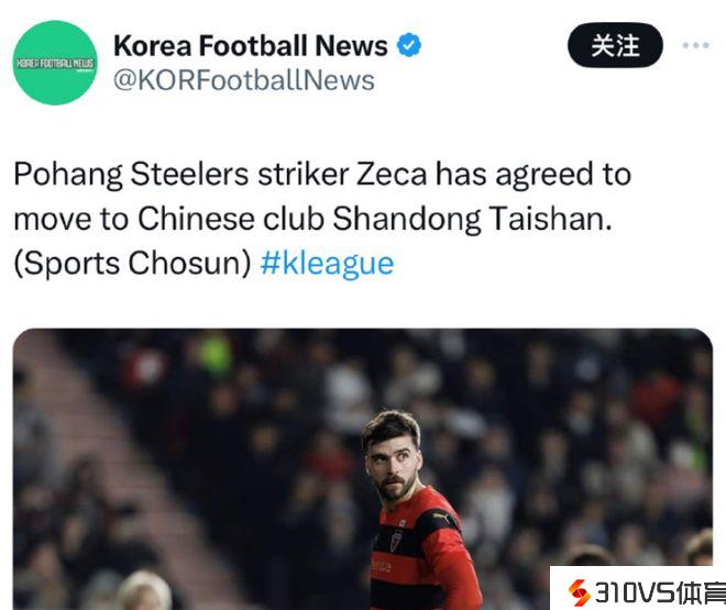 韩媒报道泰山队新援人选,巴西外援赞同加盟,在K联赛发扬出色