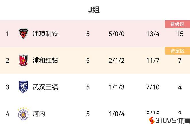J组积分榜上,浦和7分,三镇4分,差一轮落后对手3分且交手战绩优势,提早1轮出局。