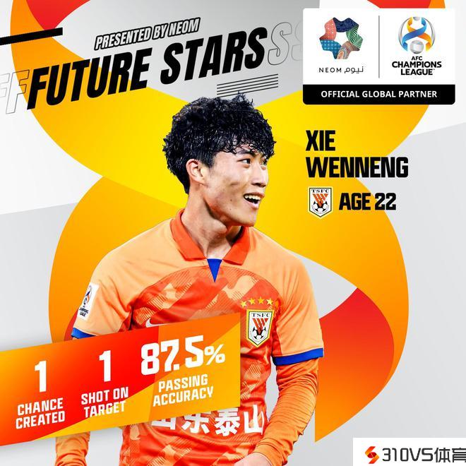 亚冠第5轮未来之星候选:山东泰山球员谢文能中选