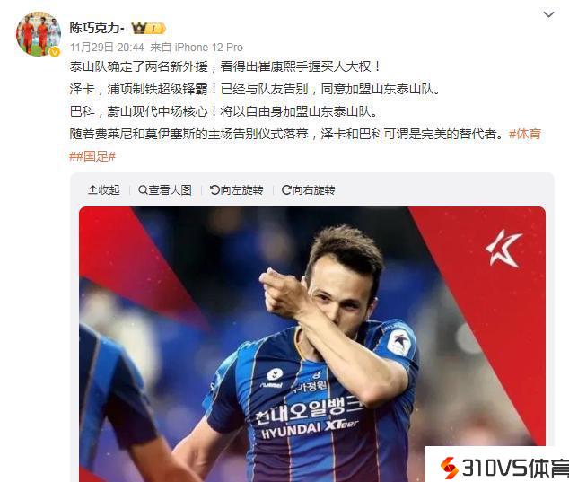 12月2日是泰山队成立30周年,各大协会以及旧将也纷繁表达生日祝愿,而泰山队众将士则默默训练中。3日,球队也迎来好音讯,韩国K联赛第38轮竞赛中,浦项制铁主教练金基东表示:泽卡要去山东了,我曾经把音讯通知球员们了。