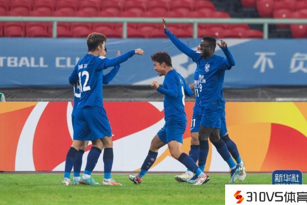 ↑武汉三镇队球员在竞赛中庆贺球队得分。新华社记者肖艺九摄