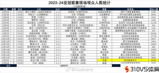 亚冠第6轮观众人数:波斯波利斯主场第一破5万,场均9千+