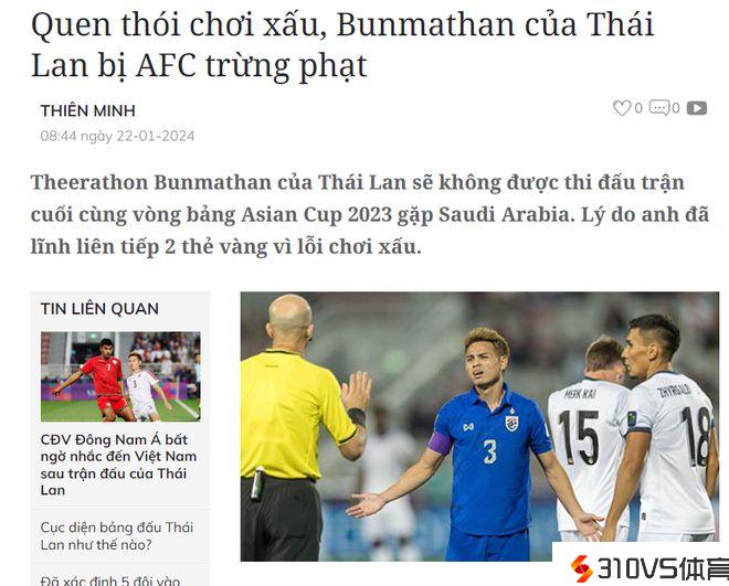 2次被罚,但没有红牌,说明汶玛探运气爆棚。越媒评价:漂亮的踢球作风最终为他招来停赛的惩罚。目前泰国曾经拿到4分,汶玛探的停赛并不影响球队晋级。