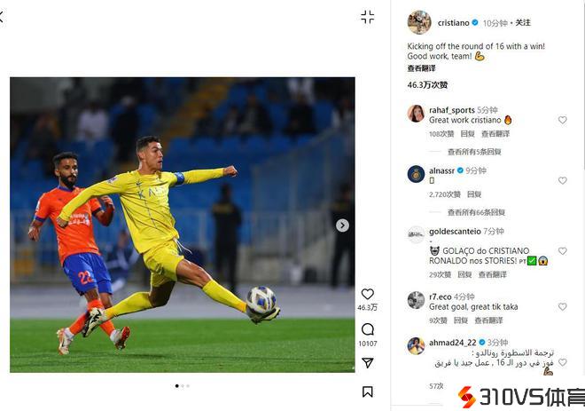 C罗社媒:以一场成功拉开16强竞赛序幕!干得好!