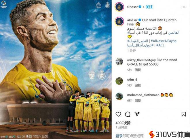 利雅得成功官方晒出C罗主体海报预热亚冠:前往四分之一决赛之路