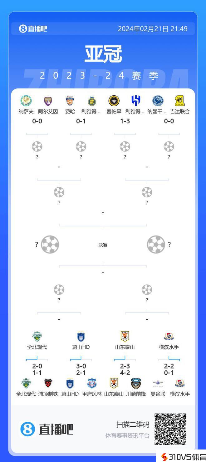 亚冠1/4决赛东亚区对阵:山东泰山vs横滨水手,全北现代vs蔚山HD