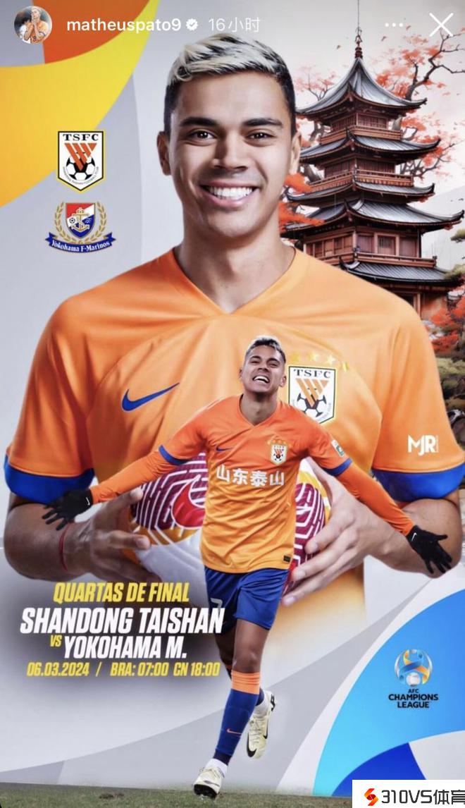 有望继续退场?泰山外援帕托发布团体亚冠竞赛海报