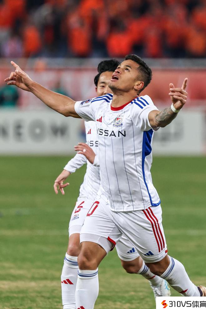 3月6日,横滨水手队球员扬·马特乌斯在竞赛中庆贺进球。新华社记者 朱峥 摄