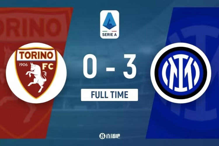 全场比赛结束,国际米兰3-0都灵。