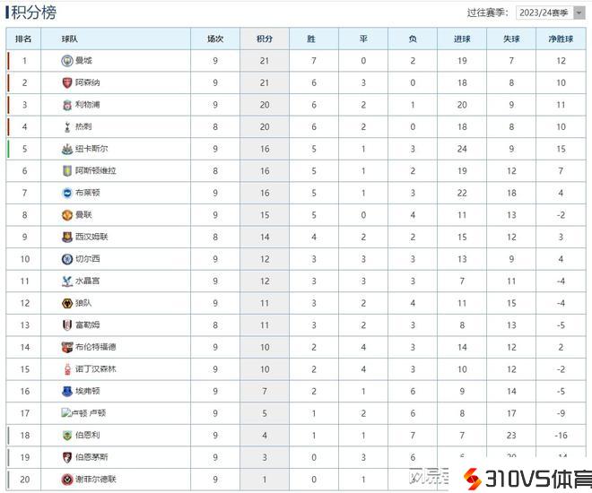 英超最新积分榜:曼城力克布莱顿登顶,阿森纳客平蓝军攀升第2!