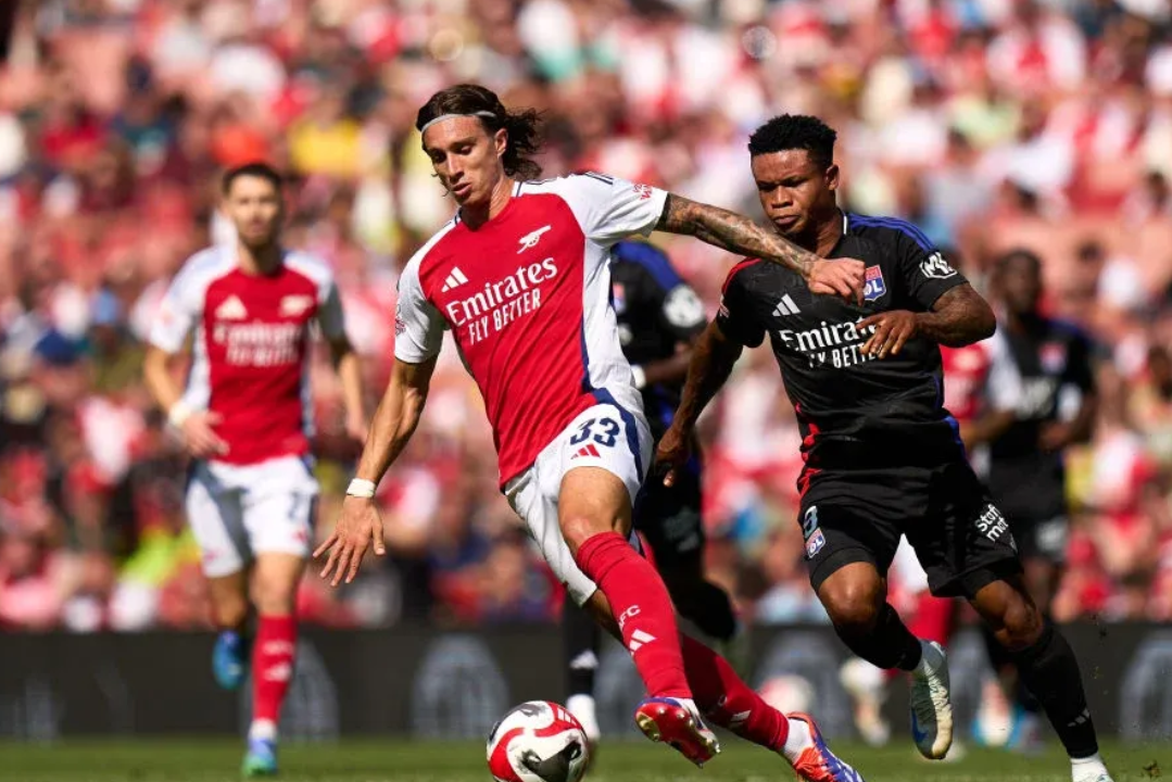 在酋长球场,6万名热情的球迷见证了意大利后卫卡拉菲奥里的阿森纳首秀,这位身价高达4200万英镑的新援在对阵里昂的友谊赛中,尽管只获得了26分钟的出场时间,却以出色的表现赢得了满堂彩。卡拉菲奥里在下半时替换下津琴科,虽然比赛结果已无悬念,但他依然展现了自己的水准。