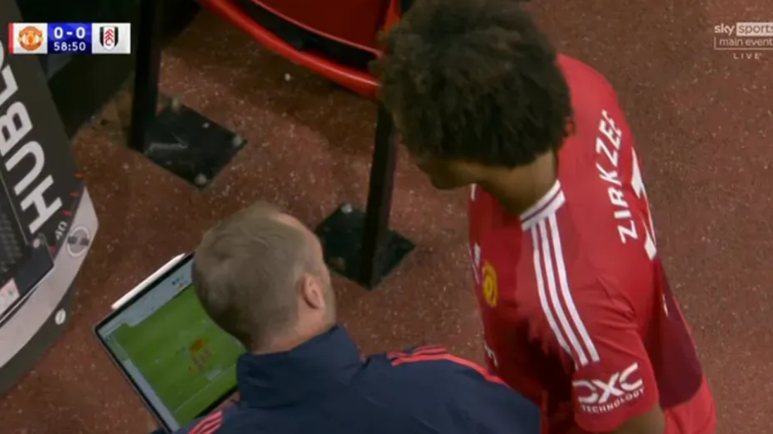 齐尔克泽在比赛还有大约30分钟结束时替换下梅森·芒特。在准备上场之际,他被拍到与一名曼联教练组成员进行交流,并仔细查看战术板。
