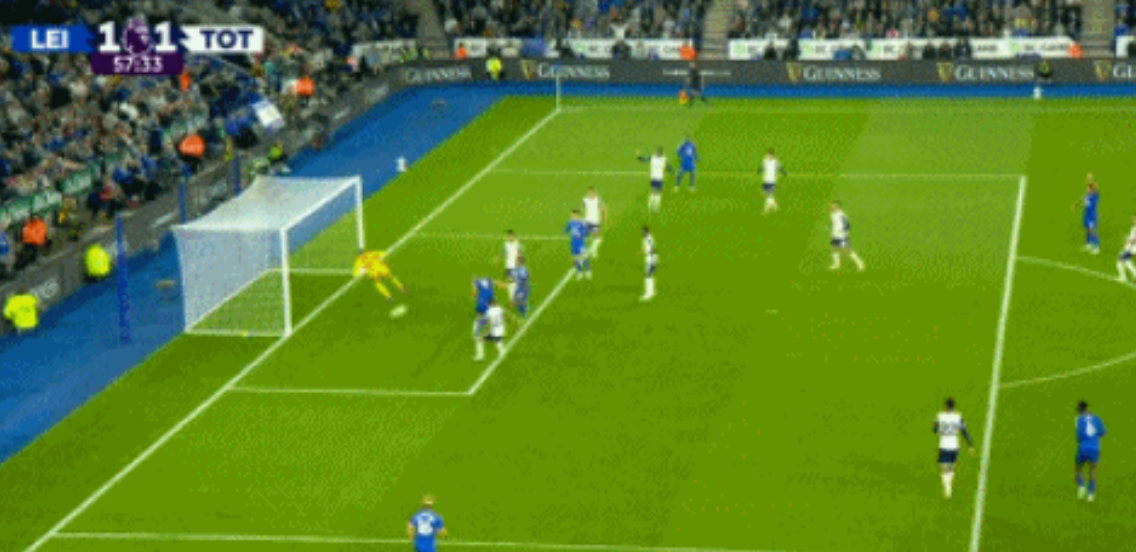 莱斯特城和热刺的较量里,莱斯特城在上半时以0-1落后的情况下,瓦尔迪及时的挺身而出。第57分钟,法塔乌右路输送威胁传中球,门前包抄的瓦尔迪头槌攻门,将场上比分追成1-1。