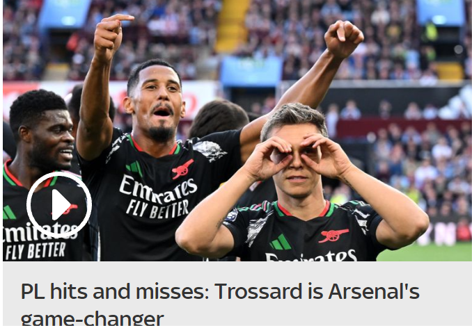 英超第2轮,替补出场的特罗萨德帮助球队打破僵局,最终帮助阿森纳2-0客场击败维拉,迎来开局两连胜。