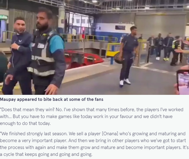英超第2轮,埃弗顿客场0-4惨败给热刺,赛后,埃弗顿球员前往火车站乘车返回时被球迷围堵,不少球员被球迷疯狂辱骂,而莫派则不甘受辱与球迷展开互怼。