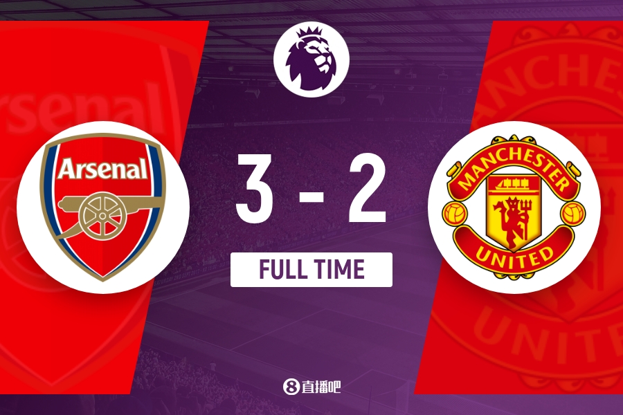 伤停补时3分钟。全场比赛结束,阿森纳3-2曼联。