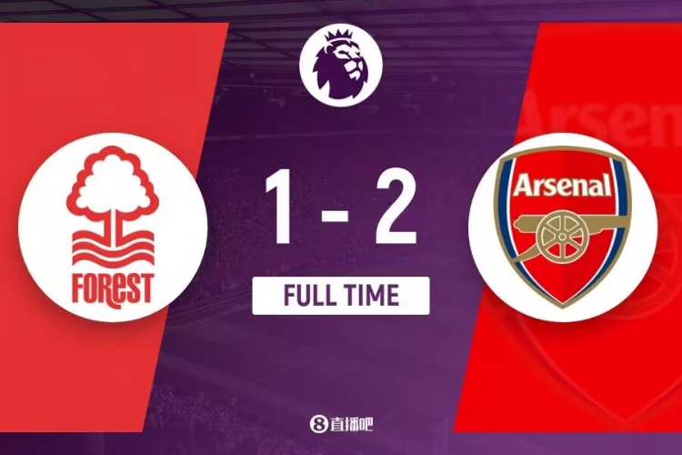 全场比赛结束,最终阿森纳2-1诺丁汉森林。