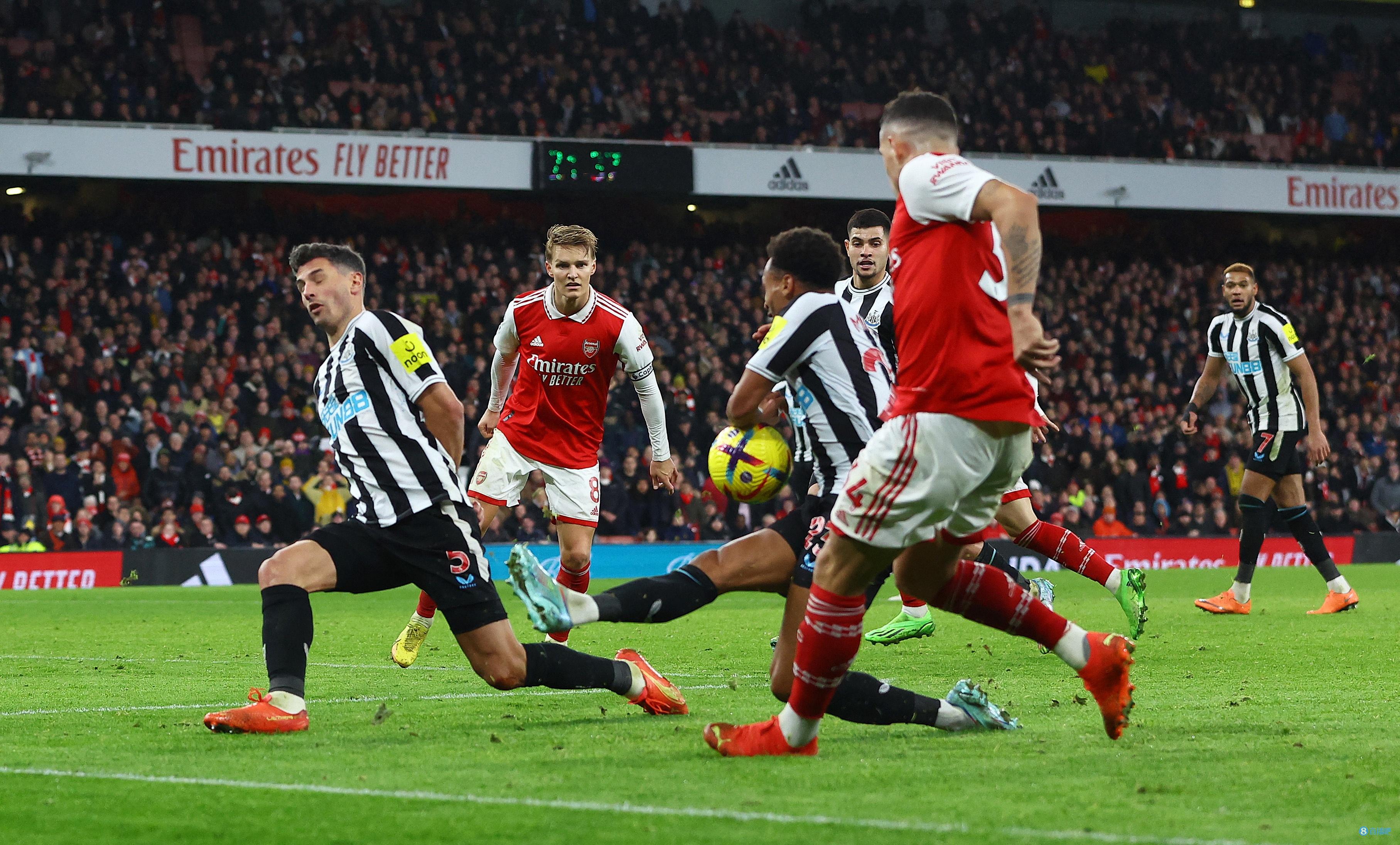 第3分钟,马丁内利禁区左侧底线前拿球突破,球被纽卡球员捅走,厄德高禁区中路迎球凌空抽射打高。↓