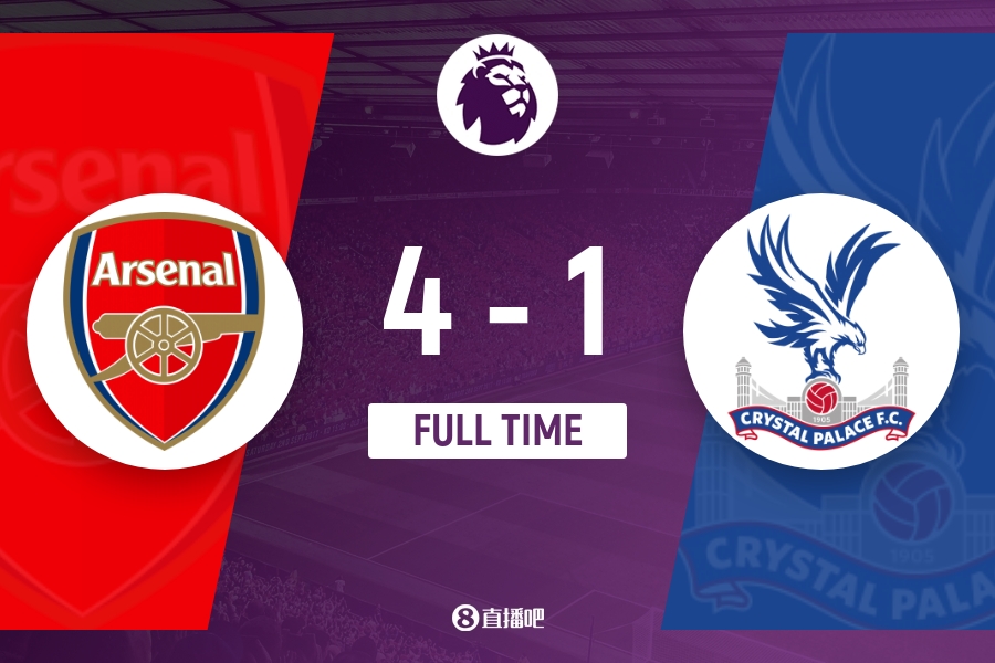 全场比赛结束,阿森纳4-1击败水晶宫。