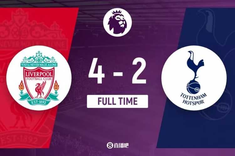 全场比赛结束,最终利物浦4-2热刺。