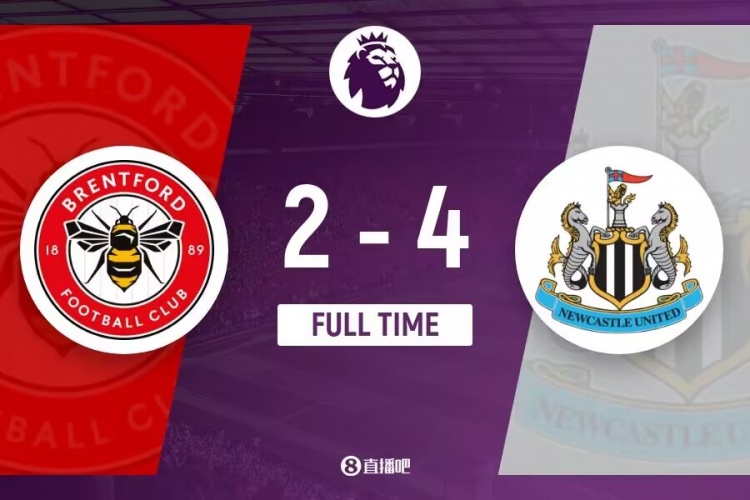 伤停补时7分钟。全场比赛结束, 纽卡斯尔4-2布伦特福德。