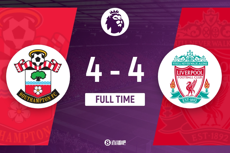 全场比赛结束,最终利物浦4-4南安普顿。