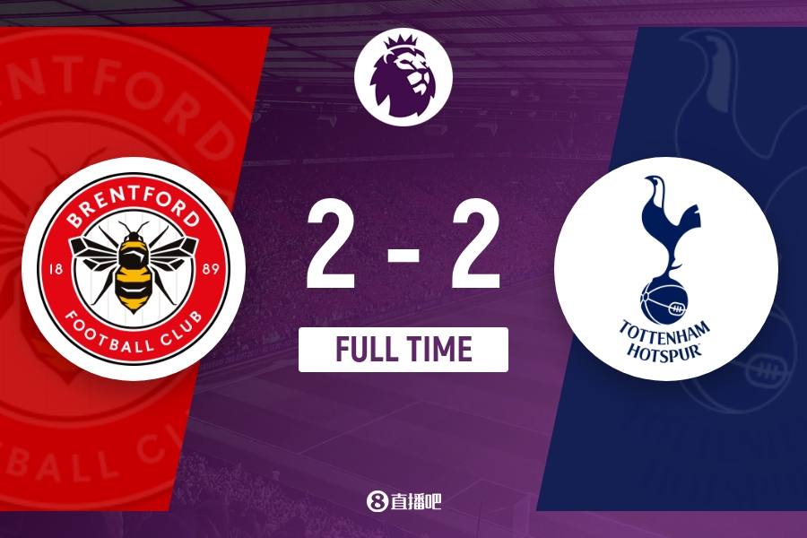 全场比赛结束,热刺2-2战平布伦特福德。