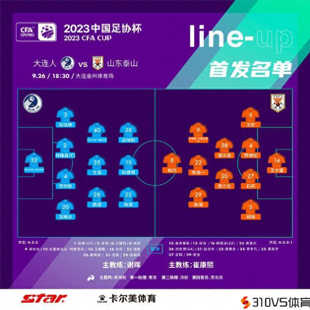 明天18:30,足协杯半决赛,大连人主场迎战山东泰山,赛前双方发布首发阵容。